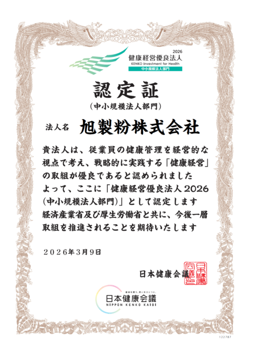 旭製粉株式会社は、「中小規模法人部門」に認定されました。