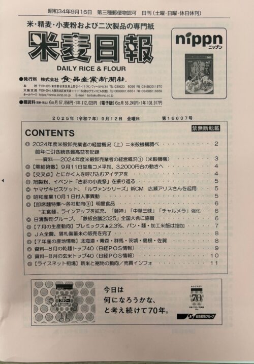 ホーム会社情報パブリシティ米麦日報(2025年9月12日発行)