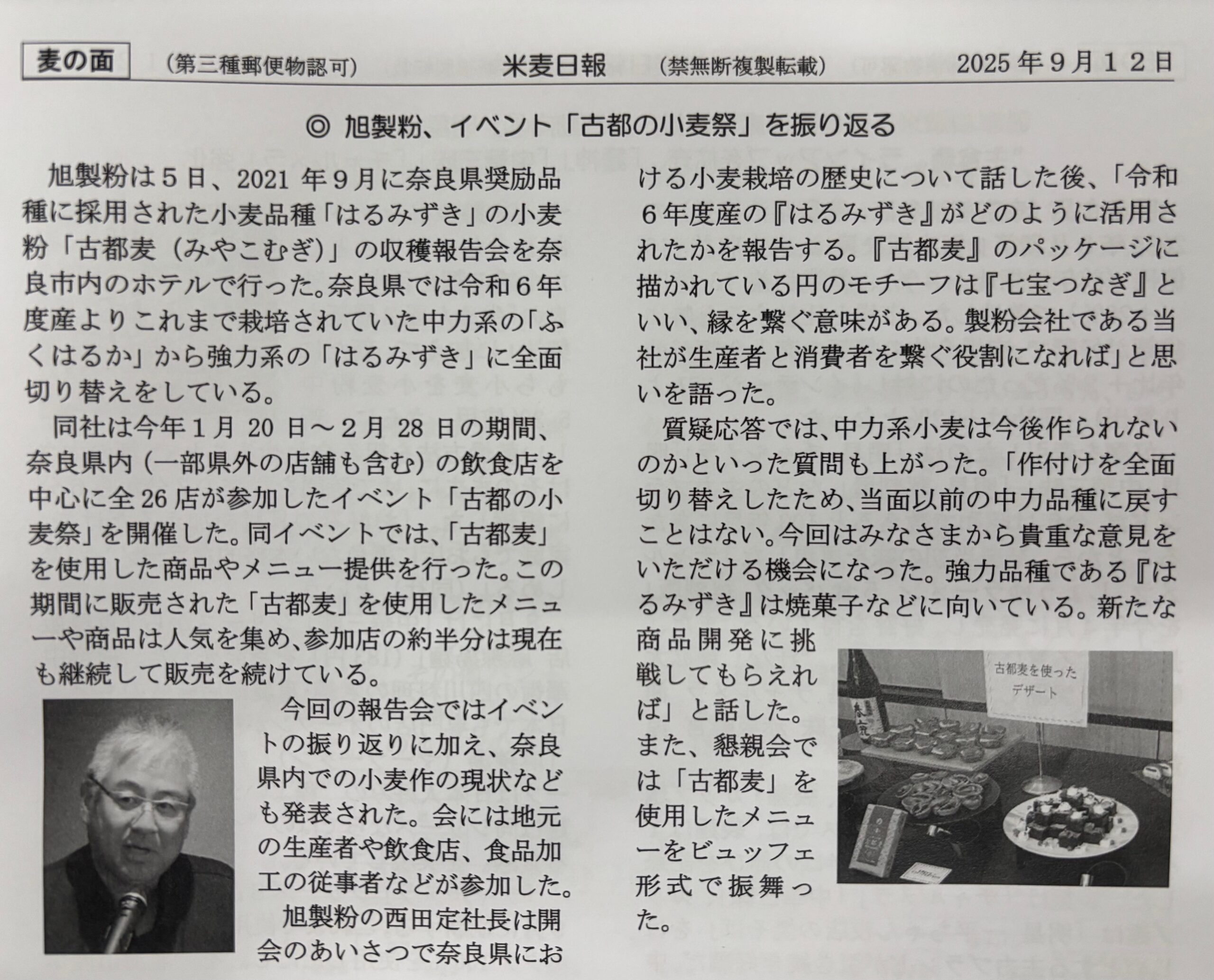 9月5日(金)に行われた「古都麦収穫報告会」が、米麦日報に掲載されました。