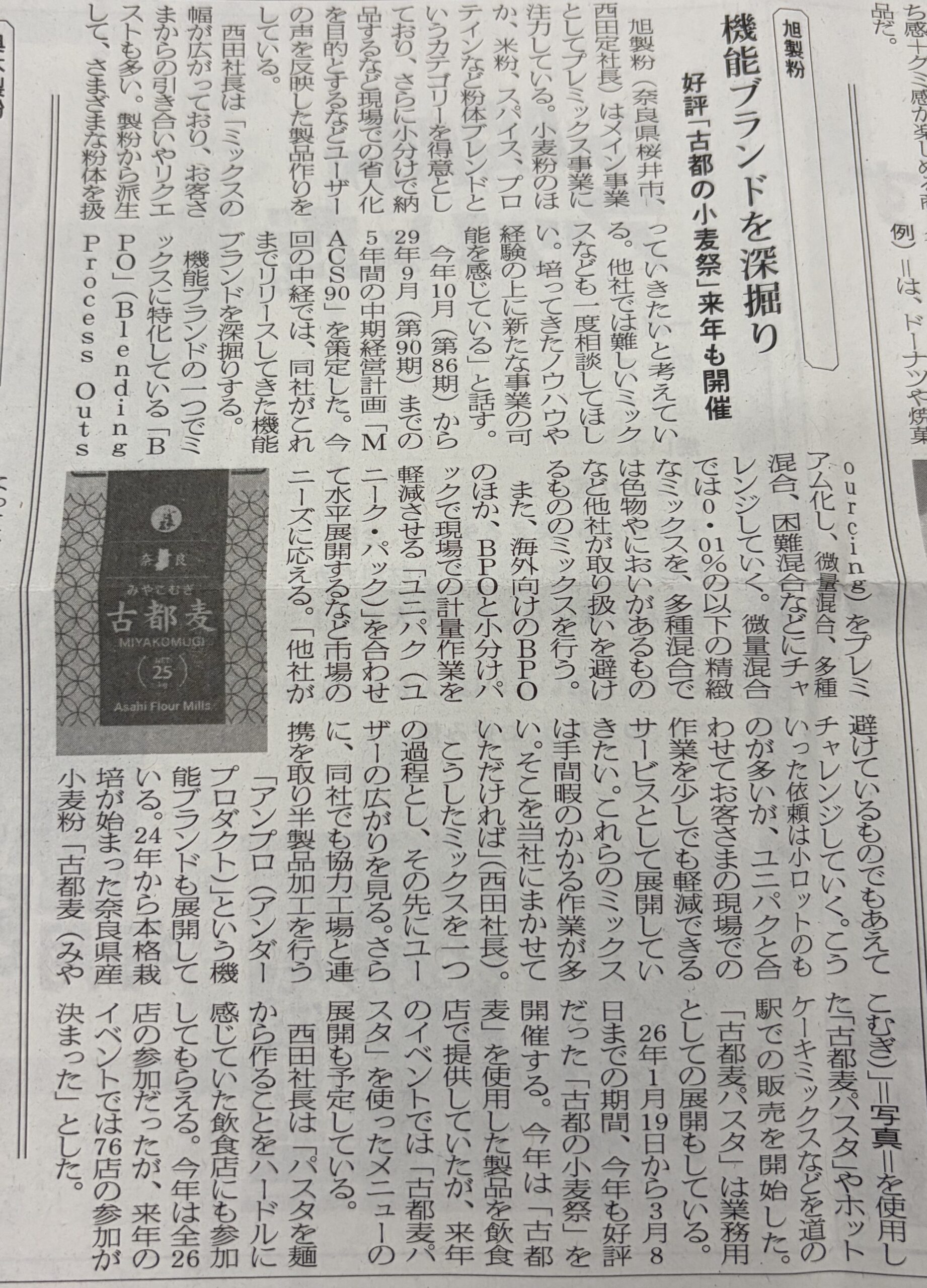 2025年12月18日の食品産業新聞に旭製粉の記事が掲載されました。