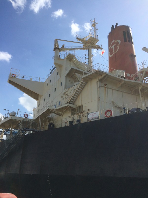 日ごろからお世話になっている飯坂製粉(株)高石埠頭サイロ様(飯坂サイロ)へ 本船荷役を見学におじゃましたしました。