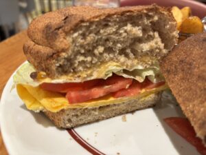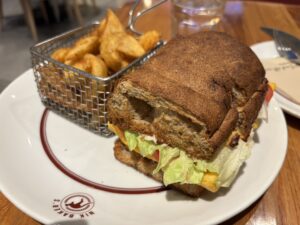 サンドイッチを注文。価格は1000円くらいと高い印象です。パンはよく言えば軽く、サクサクしています。味は美味しいと思いました。