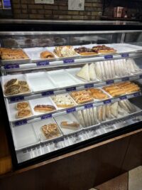 食パン1.5斤で200円弱、パイ生地のカレーパン?が訳160円、サンドイッチ180円、ショートケーキ200円くらいでした。