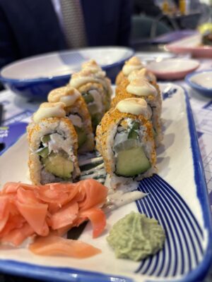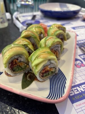 寿司はカリフォルニアロールのようです。アボカドがとてもいい味を出しています。