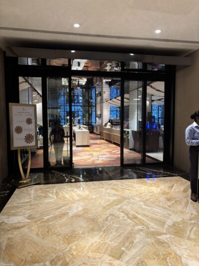 ロビーもフランス歓迎ムードです。入口にはもちろん荷物チェックがあります。